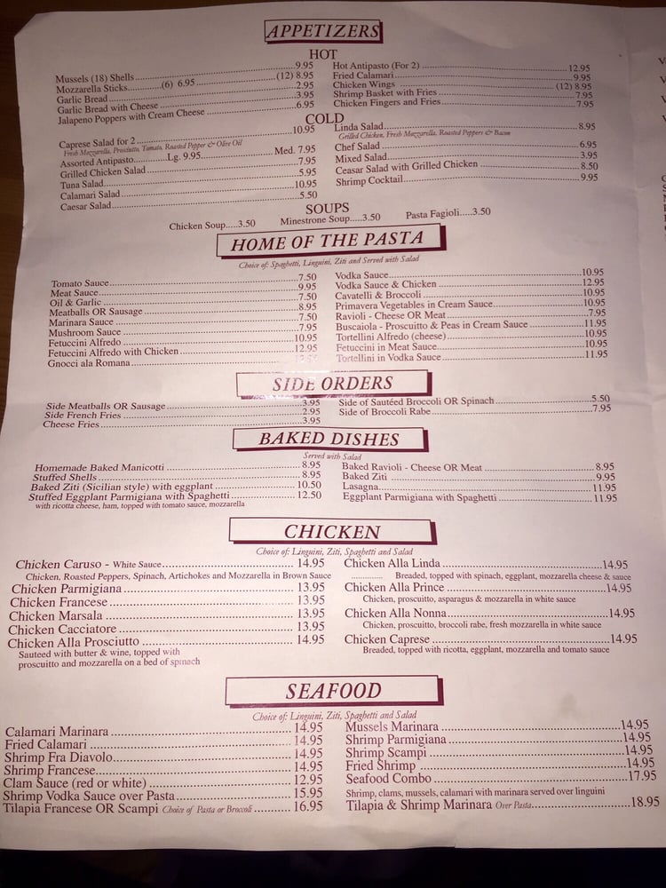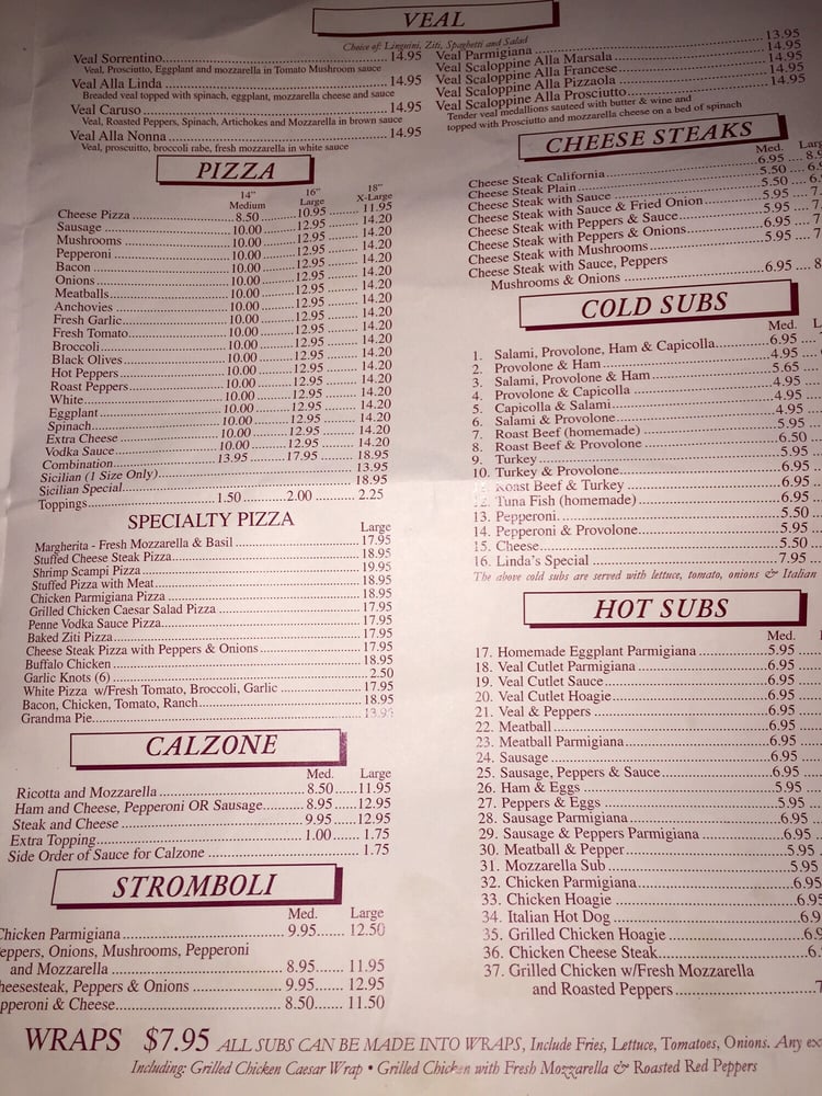 Introducing Linda's Pizza, a charming pizza haven located at 1388 Ocean Gate Ave, Ocean Gate, NJ. This unclaimed gem offers a delightful menu that caters to all cravings, from exquisite pizzas to mouthwatering cold subs and wraps. With the option for delivery or takeout, it's the perfect spot for a cozy night in or a family outing.